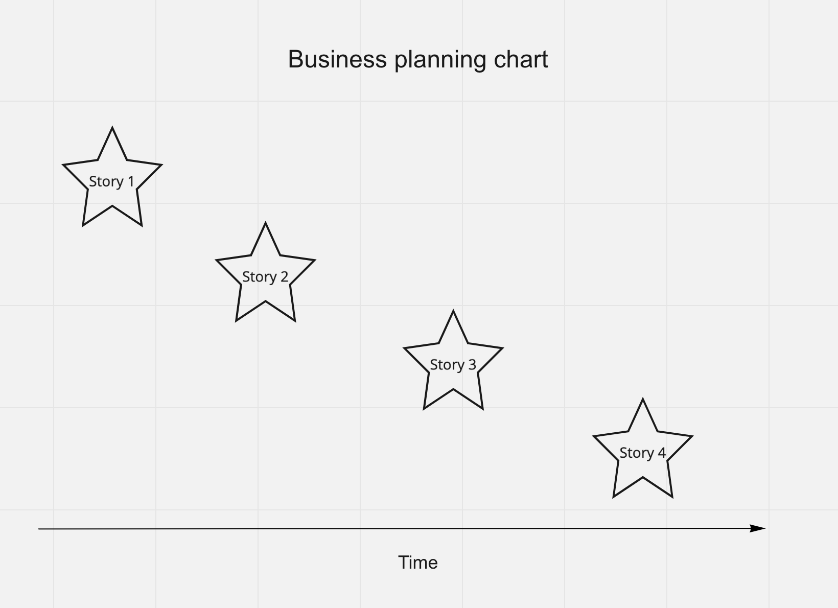 Here goes the planning that we all now know is not a very suitable approach towards software development. It looks neat even though most business people and software development teams knows the reality never turns out to be so simple. Usually story 1, 2, 3 and 4 are not finished on time. Bad software development teams! Give us accurate estimations!!